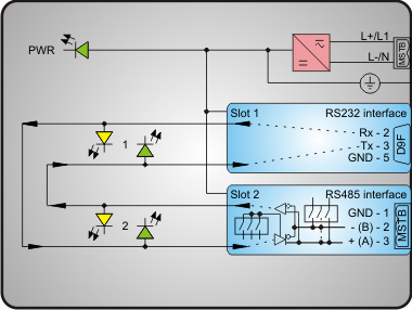 Three types of power supplies allow connection to all common station batteries: 24 V DC, 48 V-60 V DC, 110 V-220 V DC voltage. Additionaly it can be also connected to standard 230 V AC voltage.