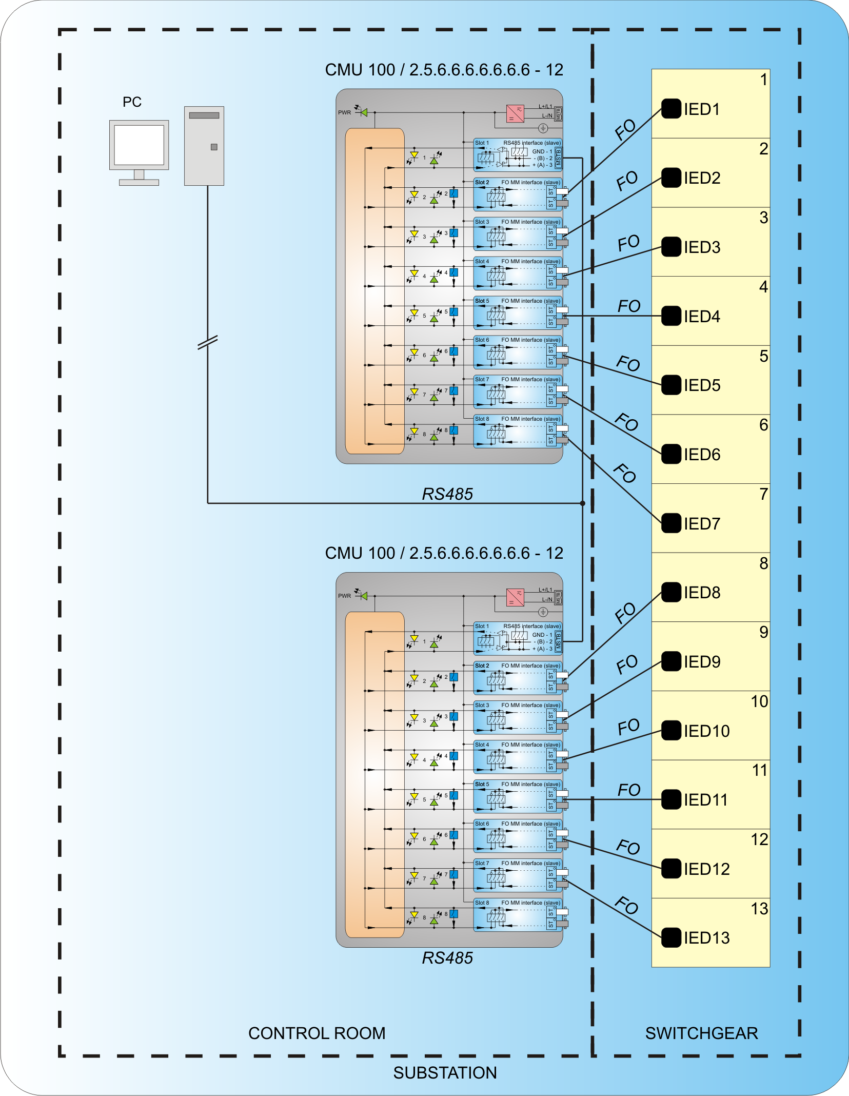 - Wide power supply input voltage for standard station batteries supply 110 V-220 V DC, 230 V AC or 48 V-60 V DC or 24 VDC